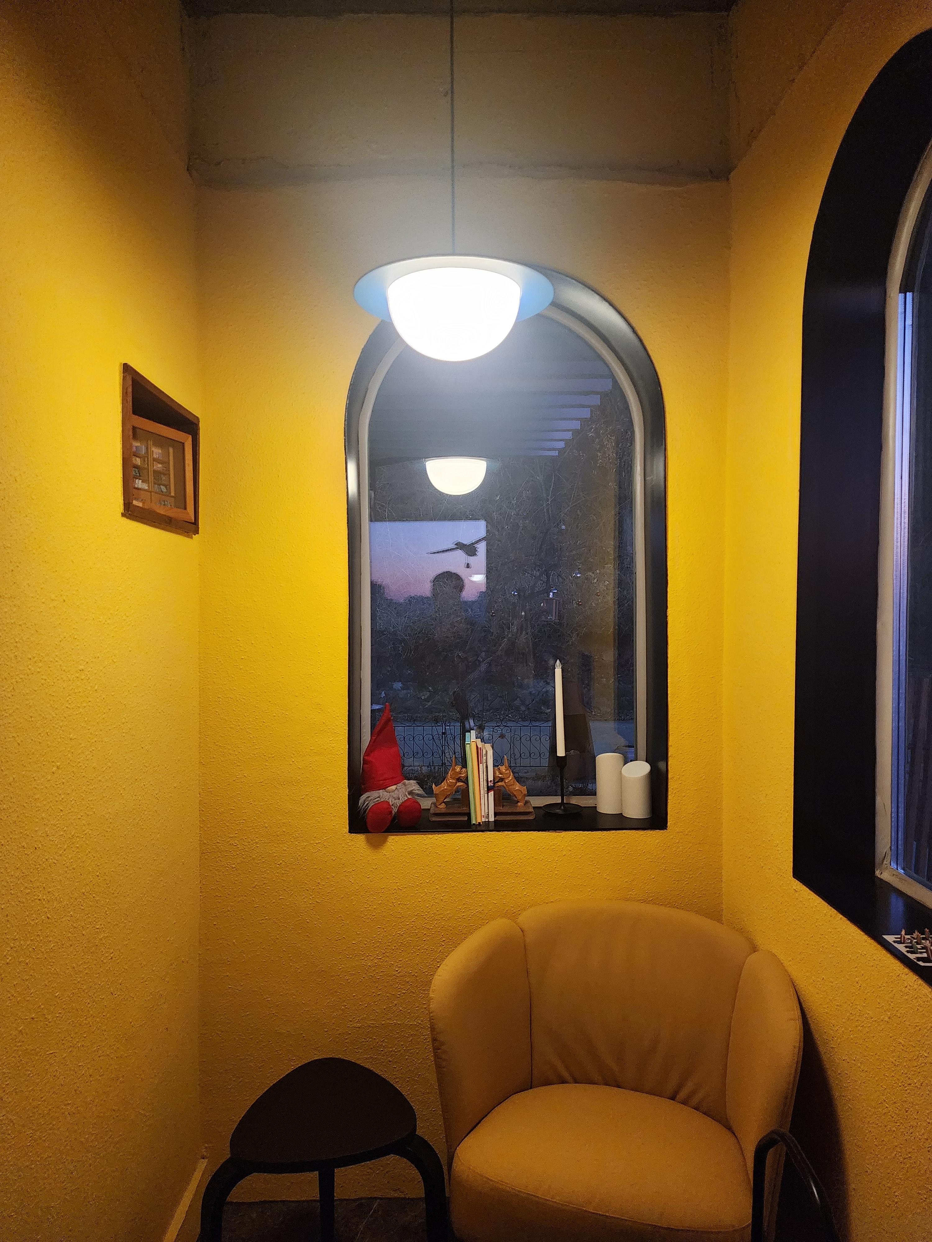 - 따뜻한 노란색 벽과 둥근 아치형 창문