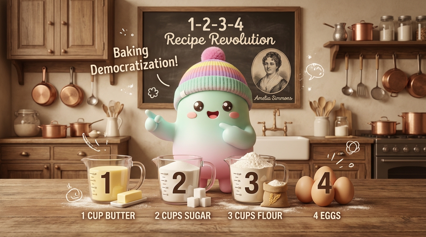 그러다 1796년, **아멜리아 시몬스(Amelia Simmons)**의 요리책에 혁명적인 방법이 등장해: