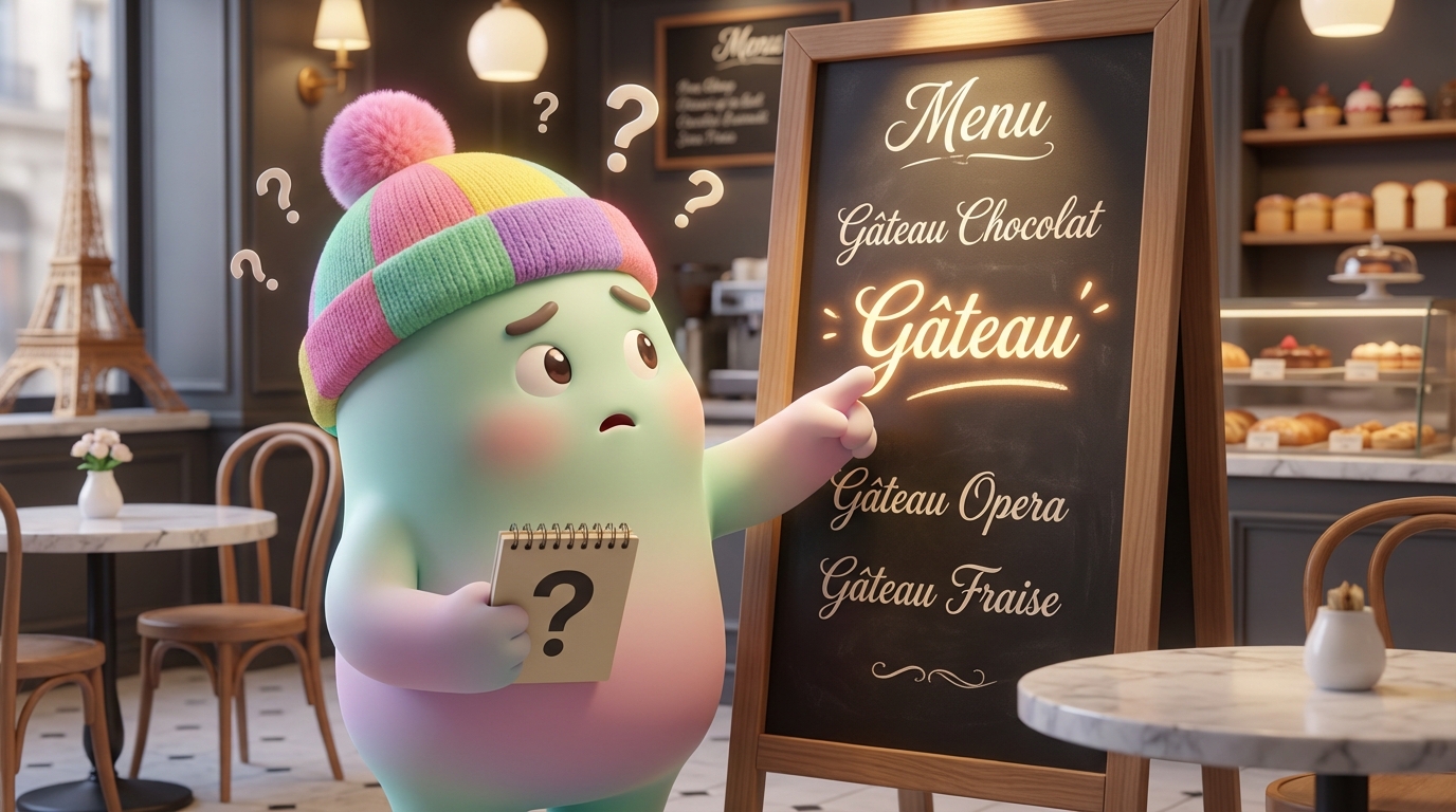 😏 쫀쿠의 관찰: 같은 초콜릿 케이크라도 **“초코케이크”**라고 쓰면 캐주얼, **“갸토 쇼콜라”**라고 쓰면 고급스러운 느낌! 이름만으로도 분위기 보정 필터가 들어가는 거야.