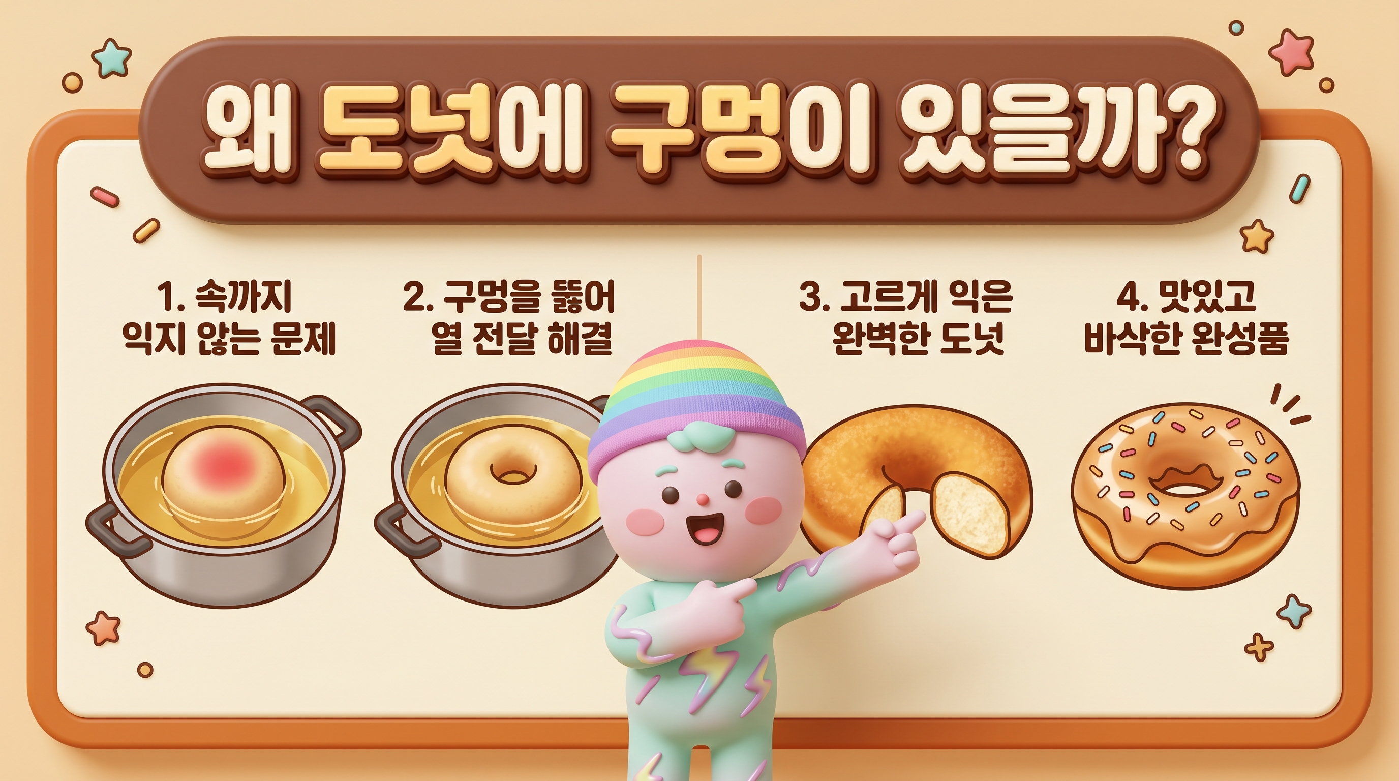여기서 가장 흥미로운 부분이야. 도넛에 왜 구멍이 생겼을까?