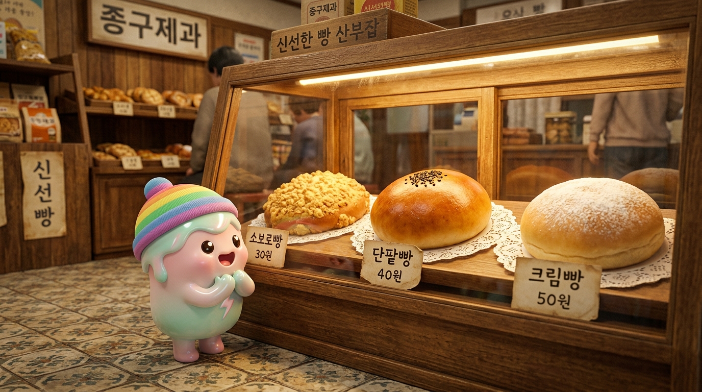 하지만 그 시절 빵에는 **“정(情)”**이라는 특별한 레시피가 들어있었던 것 같아. 배고픔이 해결되는 안도감, 친구들과 나눠 먹는 즐거움, “오늘만 먹어야지” 하며 사 먹던 작은 보상…
